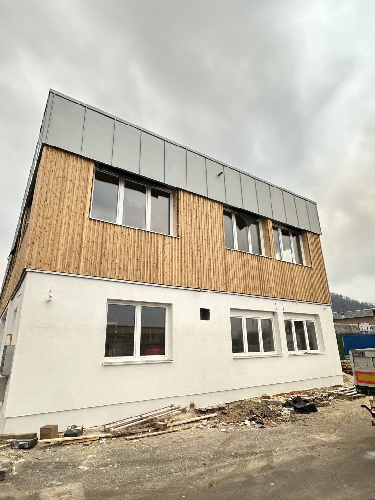- Hitro postavitev: Ker so CLT plošče izdelane po meri glede na projekt, jih je mogoče hitro sestaviti na gradbišču, kar je omogočilo hitro postavitev objekta.